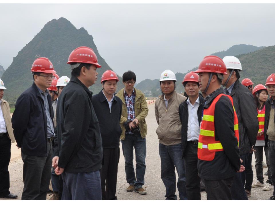 11月22日至23日,自治區(qū)交通運(yùn)輸廳廳長潘巍、副廳長梁毅分別蒞臨廣西路建公司靖那路、欽崇路、玉鐵路等項目檢查調(diào)研,了解項目旱季施工情況,親切慰問奮戰(zhàn)在施工一線的廣大員工,要求各項目把握好有利時機(jī),堅決打贏旱季攻堅戰(zhàn),以優(yōu)異的成績促進(jìn)交通建設(shè)發(fā)展。