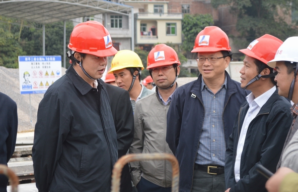 11月23日,自治區(qū)交通運(yùn)輸廳廳長(zhǎng)潘巍蒞臨那坡至平孟口岸公路施工現(xiàn)場(chǎng)檢查指導(dǎo)工作,集團(tuán)公司董事長(zhǎng)朱堅(jiān)和、百色市副市長(zhǎng)陶榮鉛等相關(guān)領(lǐng)導(dǎo)陪同檢查。
