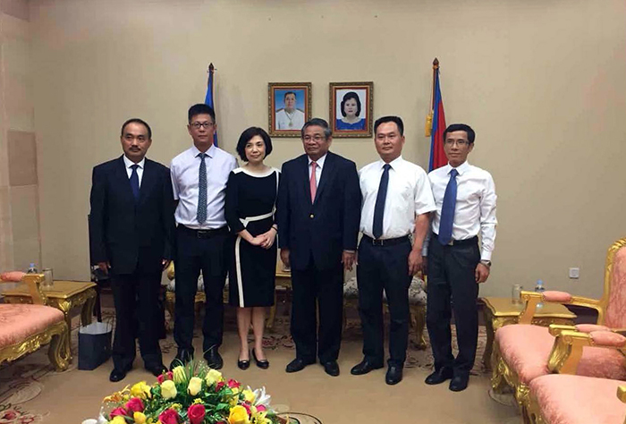 考察團(tuán)成員與柬埔寨總理府嚴(yán)才利(右三)副首相合影
