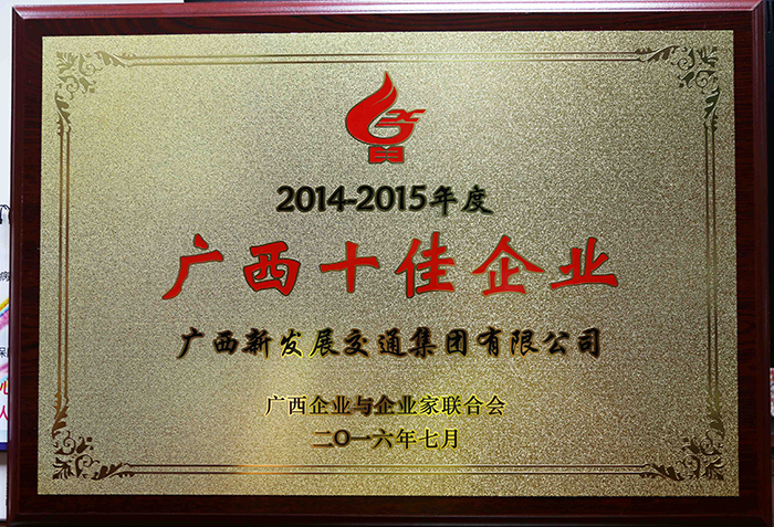 集團(tuán)公司獲得“2014-2015年度廣西十佳企業(yè)”榮譽(yù),集團(tuán)公司董事長(zhǎng)、黨委書記朱堅(jiān)和榮獲“2014-2015年度廣西優(yōu)秀企業(yè)家”稱號(hào)!