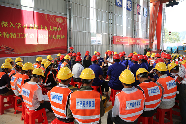11月3日,自治區(qū)人大常委會副主任、總工會主席王躍飛來到集團公司基層項目廣西路橋集團柳南高改快3標宣講黨的十九大會議精神。自治區(qū)總工會黨組書記、副主席侯線紅,自治區(qū)總工會巡視員陳湘文,自治區(qū)直屬企事業(yè)工會常務副主任馬寧,集團公司黨委副書記、工會主席張友坐,廣西路橋集團黨委副書記、副董事長、工會主席曹文海等隨同。