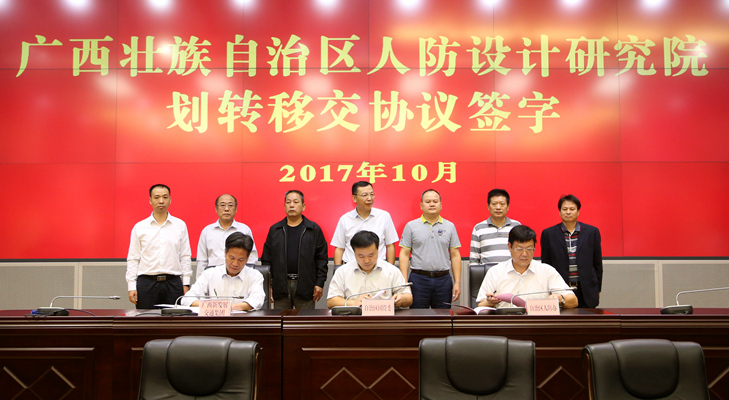 10月30日上午9時,自治區(qū)國資委、自治區(qū)人防辦及廣西新發(fā)展交通集團有限公司在自治區(qū)人防辦應急指揮中心舉行廣西壯族自治區(qū)人防設計研究院劃轉(zhuǎn)移交協(xié)議簽字儀式,標志著自治區(qū)人防設計院正式與自治區(qū)人防辦脫鉤,成建制劃轉(zhuǎn)移交新發(fā)展集團管理。集團公司黨委書記、董事長朱堅和,黨委副書記、副董事長、總經(jīng)理唐咸秋,黨委副書記、董事、工會主席張友坐及集團公司辦公室、投資改革發(fā)展部、人力資源部、黨群工作部、法律事務部等部門主要負責人參加簽字儀式。
