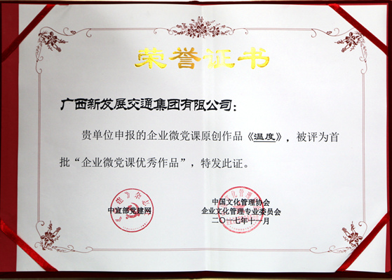 11月18日,2017中國文化管理協(xié)會(huì)企業(yè)文化管理年會(huì)暨企業(yè)文化學(xué)習(xí)實(shí)踐分享會(huì)在杭州召開。集團(tuán)公司及直屬企業(yè)設(shè)計(jì)院有限公司、捷通公司榮獲企業(yè)文化建設(shè)標(biāo)桿單位;集團(tuán)公司企業(yè)微黨課視頻《溫度》、直屬企業(yè)捷通公司企業(yè)微黨課《堅(jiān)守信仰 不忘初心》被評(píng)為首批“企業(yè)微黨課優(yōu)秀作品”,直屬企業(yè)設(shè)計(jì)院有限公司、捷通公司宣傳片榮獲企業(yè)宣傳片銅獎(jiǎng)。