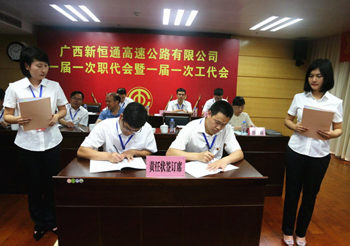 4月4日上午,新恒通公司一屆一次職代會暨一屆一次工代會勝利召開。會議全面貫徹落實黨的十九大及全國、全區(qū)交通工作會議和集團公司2018年工作會議精神,全面總結(jié)公司成立三年來的工作,明確和部署2018年各項重點工作,共謀公司發(fā)展大計,為奮力開創(chuàng)新時代“縣縣通”高速公路建設(shè)事業(yè)新局面而努力奮斗。集團公司領(lǐng)導出席會議并發(fā)表講話,集團公司派駐監(jiān)事會成員、41名正式代表、3名列席代表參加會議。公司黨委副書記、工會主席梁波主持會議。