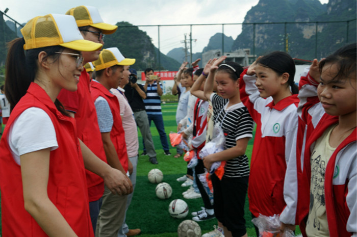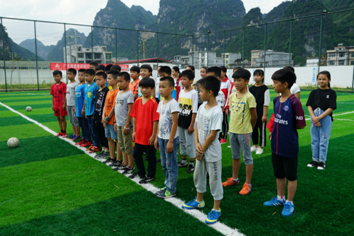 六也鄉(xiāng)中心小學(xué)韋校長對青年志愿者們的幫助表示衷心的感謝,他表示:志愿者們的愛心不僅解決了孩子們的運動場所問題,更是在孩子們的心中種下了希望的種子,圓了孩子們的足球夢。六年級的小浩作為球隊隊長為都巴高速志愿者代表送上錦旗,并表示一定不會辜負大家的愛心與期望,勤奮鍛煉、努力向上,做一個對社會有用的人。