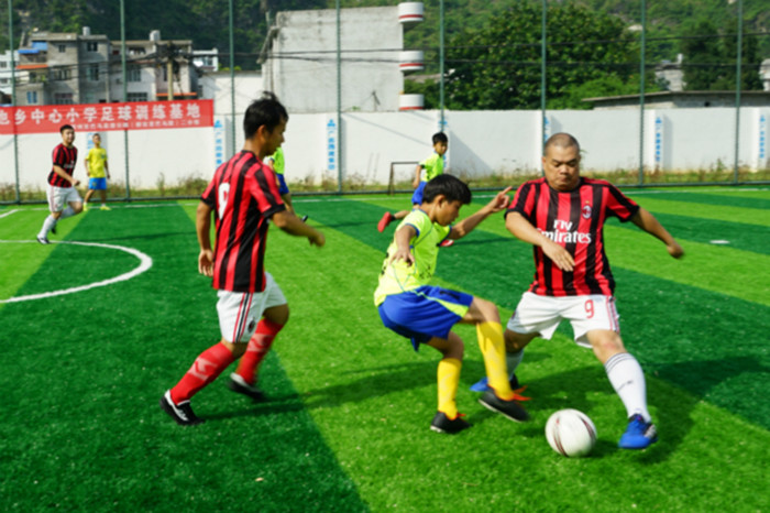 圖四:都巴高速足球隊與六也鄉(xiāng)中心小學(xué)足球隊進行友誼賽