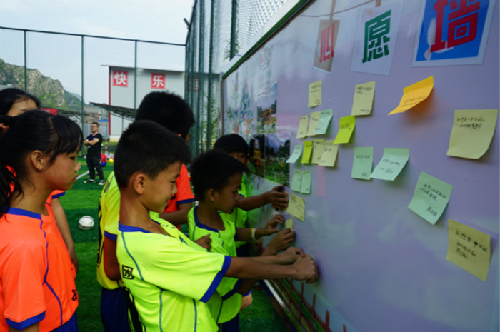 在活動現(xiàn)場,志愿者們還為孩子們設(shè)置了“心愿墻”,孩子們在老師的指引下寫出了埋藏在心里已久的心愿—“我想要一件皇馬隊球衣”、“我想要一本日記本”……一個個質(zhì)樸的心愿都將在志愿者的幫助下得以實現(xiàn)。