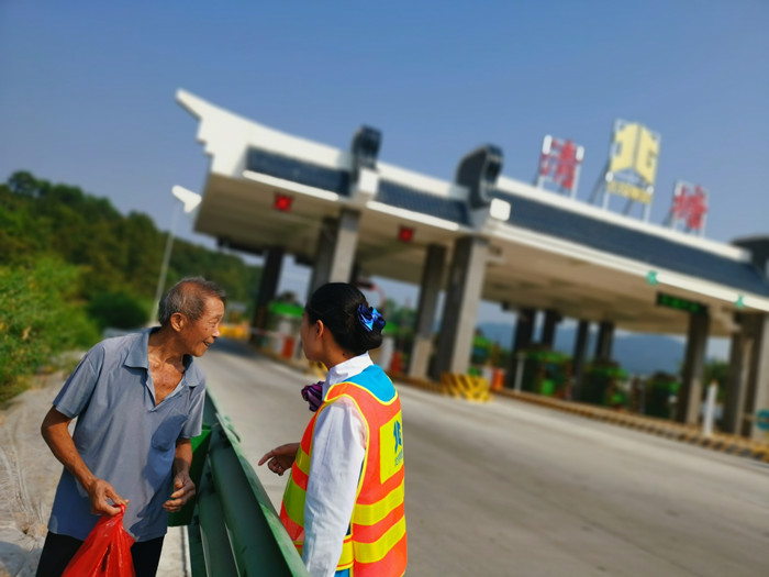 圖2:10月3日上午,當(dāng)班收費員熱心幫助迷路老人返家