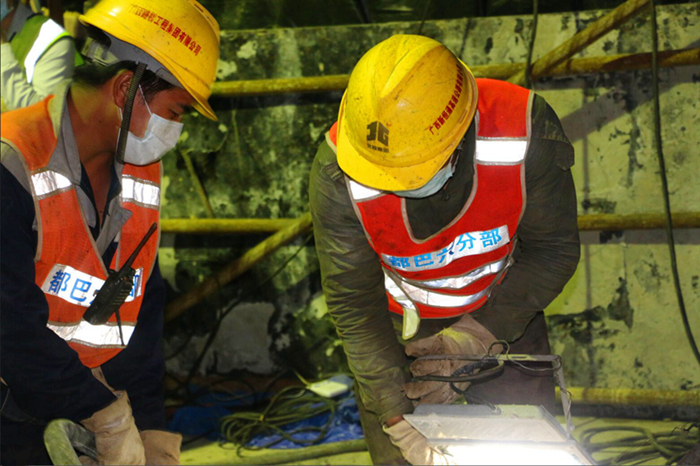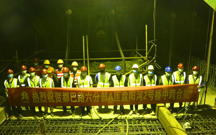 盤陽河2號橋中跨合龍結(jié)構受力復雜,對施工工藝及質(zhì)量要求較高,且作業(yè)面積狹小,在夜間低溫條件下才能進行合龍澆筑,施工難度較大。都巴高速指揮部與項目管理人員精心策劃、嚴密組織施工,成立了工作領導小組和突擊隊,堅持一手抓疫情防控、一手抓復工復產(chǎn),安全、優(yōu)質(zhì)、高效完成建設任務。